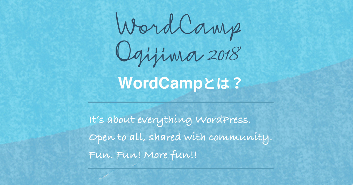 WordCamp Ogijima 2018 is over. Check out the next edition!